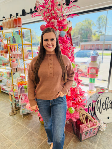 Brown knitted button top