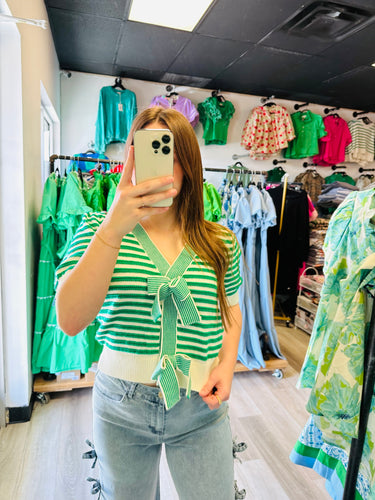 striped v neck with bows